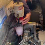 I went to check progress with filling the water tanks and learned that the water hose had mistakenly been placed into the fuel fill on deck. Our diesel tank was topped off – with water. Right around that time, the engine that had been running, died when the water was drawn into the fuel system.